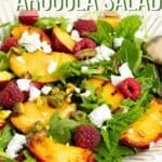 This simple Grilled Nectarine Arugula salad is utterly perfect when juicy nectarines or peaches are ripe. Peppery arugula, a tangy vinaigrette made with Dijon mustard and raspberries and a scattering of feta and pistachios all combine to make the perfect summer salad that you'll want to eat all season!